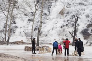马峪乡张家山村大力发展乡村旅游,投巨资开发的葫芦沟景区已见雏形。入冬以来,他们利用常年不竭的山泉水制造了几处高二三十米、长约百米的冰瀑。奇异多姿,晶莹剔透的冰瀑如童话般的冰雪世界,吸引了众多游人前往观赏。