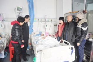 1月27日上午,县电影公司离休干部任世华及他的两个女儿任艳、任丽父女三人,来到县人民医院神经内科重症监护室,探望了正在住院的桃花营村特困户赵四虎与他的孙女儿赵佳鑫。任世华给赵四虎带去了1000元慰问金以及水果、蛋糕、牛奶等慰问品,并且为小佳鑫留下200元的压岁钱。任丽、任艳也将一件刚刚买来的枣红色棉衣给小佳鑫穿上。