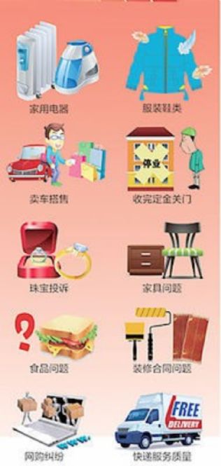 3月9日,国家工商总局对外发布2015年处理消费者投诉举报咨询情况分析显示,2015年,消费者投诉热点集中在移动电话、汽车及零部件、服装鞋帽、文化、运动娱乐用品、网络购物、居民服务、预付卡服务、旅游服务、餐饮服务等10个方面。
