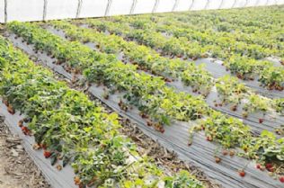 3月,走进我县柳杜乡南青堆村青堆农庄,春意浓浓的草莓园亮出一道美丽的风景线:这边的连栋温室里,笔直的田垄,绿色的植物生机勃勃地生长着。那边的立体栽培大棚内,草莓全都长在一米多高的架子上,红艳鲜亮的草莓点缀在大片绿油油的的叶子中间,长势喜人。