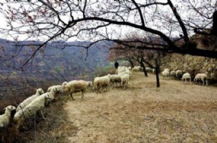 走进水峪村,沿着绵延的山路爬上山顶,发现一群群山羊正在山坡上吃草,牧羊人走在羊群的前面,旁边一小块平坦的山地上生长着一排桃树,远方是层层叠叠的山峦,一幅天苍苍野茫茫,风吹山坡见羊群的山野牧歌呈现在大家面前。