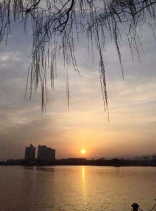 下班后,寻春,看夕阳。湖边,夕阳西下,垂柳摇曳,湖水沐浴在落日余晖中,霞光,染了山、红了水、醉了心……