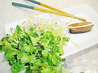 苜蓿芽之蛋白含量高于其它豆类,含有钙、磷、铁、钠、钾、镁等矿物质及维他命a、b1、b2、b6、b12、c、e、k和多种氨基酸及酵素,营养丰富、热量低、清爽可口,以生食为佳,有益身体健康,能使酸性血液转变为弱碱性,它含有高量的维他命e,能防止促进老化的过氧化脂质产生,强化血管以及使血液循环更顺畅。苜蓿芽虽然这诸多好处,但是尽量不要生食。