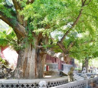 周柏护圣堂,互拥抱颈项,天下无双。银杏楸槐,参天古木竞争光。
