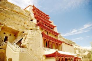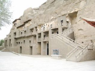 莫高窟俗称千佛洞,在敦煌市东南25公里的鸣沙山东麓的断崖上。它与我省的大同云冈石窟、河南的洛阳龙门石窟合称我国三大石窟,是世界上历史最悠久,内容最丰富,保存最完好的文化艺术宝库。相传公元366年,有位叫乐僔的僧人云游到此处,忽见对面三危山金光灿烂,状若千佛。于是他到处化缘,请来工匠在断崖上开凿了第1个洞窟;其后僧人法良效法,在旁边又开凿了第2个洞窟,莫高窟的历史由此开始。历经北魏、隋、唐、五代、宋、西夏、元等各个朝代的相继开凿,形成了一座内容浩瀚,规模庞大的石窟群。直到现在,仍有石窟492个,塑像2450尊,壁画4.5万平方米。如按1.5米高计算,光壁画就可构成总长30多公里的画廊。这些丰富的文化遗产是中华民族的骄傲,也是我们了解古代历史、艺术、宗教的重要窗口。
