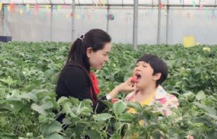 图为5月2日,游客在柳杜乡南青堆村青青堆农庄里采摘草莓。