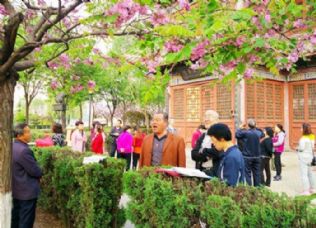 槐花飘香,歌声嘹亮。每天早晨,有不少中老年朋友,聚集在怡心园内引吭高歌,共同合唱一首首红色经典歌曲。