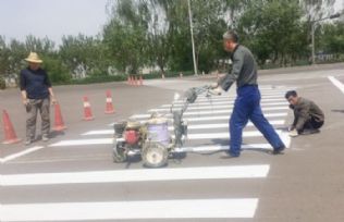 为确保标线清晰和交通安全,近日,县交警部门对榆古路白河桥附近的交通标线进行了重新标示。图为工人们在烈日下加紧施工。