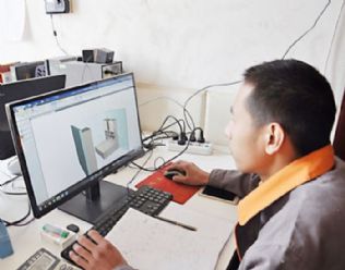 在第一道工序处,记者看到的是,这里的技术人员,正在按照顾客意愿,在电脑上用美国VC软件设计家具:量好的尺寸进入电脑后,一个360度可立体旋转的模型图,将即将打印而成的家具各个部位清晰呈现。