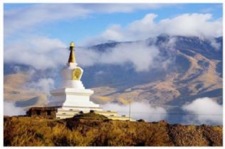 亚丁是个小村庄,村子里所有的民居都用石头砌成,屋顶是木板,自上而下看,整个村子就像一幅暖色的版画。亚丁的藏语意思是“向阳之地”。香格里拉按照藏文的字面意思是“心中的日月”,佛陀在一本经文里把他理想中的佛国净土称为“香巴拉”,后来就演变为香格里拉的音译。亚丁有三座公认的佛教神山:仙乃日、夏诺多吉和央迈勇,她们分别代表着佛教中的观世音、金刚手和文殊三个菩萨,这里的景色非常近似佛经中描述的净土,故被称为“最后的香格里拉”。