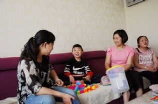 我县对残疾儿童“送教上门”工作全面展开,目前,县特殊教育学校已完成了摸底工作,对残疾学生的感知、认知和沟通交往等方面的情况进行了筛查,并根据每个学生的具体情况制定了送教方案。图为该校教师对残疾儿童进行上门授课。