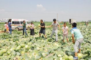 6月29日上午,在集义乡靳村的贫困村民魏庆林的菜地里,恒美购物、德胜圆、巴厘岛等爱心企业及县国税局等单位及清徐义工组织的爱心购菜人士和车辆排起了长龙,一上午共购买茴子白等蔬菜六万斤,基本上解决了魏庆林的卖菜难题。这些蔬菜将无偿提供给本县居民或外销。