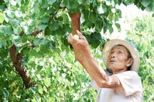椭圆形的亚美尼亚芒果杏密密麻麻挂满枝头,农民们正忙着采摘,脸上露出丰收的喜悦。