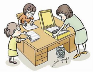 这时,千万不要以为能松口气了,奇迹还没有发生,激动人心的时刻还没有来到。现在,需要将制好的试卷版面轻轻地取下来,为了防止打皱折,卷好后,手呈半球状,将蜡纸版面浮托于掌心,送去油印。