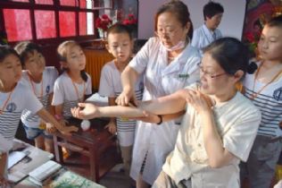 7月6日傍晚,在一个个有趣话题的吸引下,来自大北村观音寺夏令营度假的30多名孩子们,认真聆听了来自河北省张家口玄世堂中医世家王艳平师徒的一段神奇的中医药体验之旅。王艳平以通俗易懂的语言、生动浅近的事例,不仅让孩子们了解了中医,感知中医药学知识,领略中医药文化,还体验了推拿、刮痧等中医诊疗技术的神奇魅力,进一步弘扬中医文化。