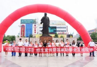 太重集团公司技工学校在醋都广场向10名品学兼优的清徐籍学生发放国家助学金