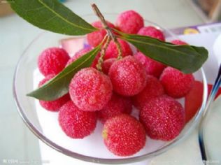 杨梅水分含量92%。杨梅汁液丰富,酸甜可口,含有丰富的维生素C、维生素B2、胡萝卜素、花青素、柠檬酸、苹果酸等,性温,味甘酸,具有生津解渴、和胃消食、止吐止泻的功用,非常适合消化不良的人食用。但杨梅口感较酸,胃酸过多、慢性胃炎、胃溃疡患者应少吃,以免引起胃部不适。