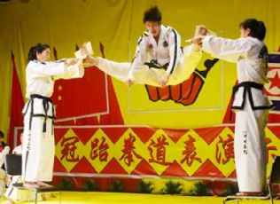 7月27日晚,王冠跆拳道邀请朝鲜国家跆拳道示范团在县电影院共同进行了跆拳道精彩展演。