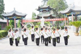 在县文体活动中心大厅中、院子里,小演员们肩挎绿色小军包,手捧《左权家书》,敬军礼,练军姿,放飞祈愿和平的彩色气球,练得非常用心。的确,这趟红色之旅,既是一次缅怀先烈的活动,也是一次清徐形象的展示。