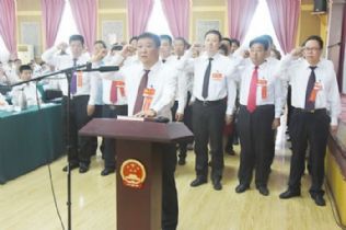 本报讯8月27日上午,县十六届人大一次会议首次组织新当选人员进行宪法宣誓。通过这一程序,让新当选人员更好地铭记誓言,履行承诺。“我宣誓:忠于中华人民共和国宪法,维护宪法权威,履行法定职责……”在悬挂着国徽的大会现场,新当选人员整齐排列,右手举拳,跟着新当选的县人大常委会主任张晋涛向宪法庄严宣誓。虽然誓词只有短短70个字,但字字铿锵,让在场的宣誓人都经历了一次精神洗礼。