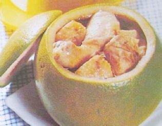 [做法] 公鸡去毛、内脏洗静,柚子去皮留肉。将柚子放入鸡腹内,再放入气锅中,上锅蒸熟,出锅时加入精盐调味即可。
