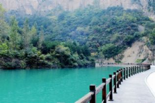 古人讲,山之韵在水。山西平顺通天峡因为有了水,从而具有了更多的妩媚和娇艳。北方的水大多朴素无姿,然而通天峡的水,让人惊叹,震撼!通天湖汇集了来自峡谷里的天然泉水,占地约2万平方米,最深处达13米,湖水清凉纯净,含有多种有益于人体的矿物质,在不同的日光下,呈现出变幻莫测的色彩,如玉如碧,如梦如幻,如一块蓝天落入山间。环绕湖水的青山剑一般直插云天,抬头仰望有泰山压顶之感,青山巍峨,碧水如带,恰如舒展臂膀的汉子呵护沉睡的娇娘。横跨湖面是两座木制小桥,真可谓小桥湖水,别有景致,不知是人在画中游,还是画在脚下流。直叫人陶醉其间,乐而忘返。