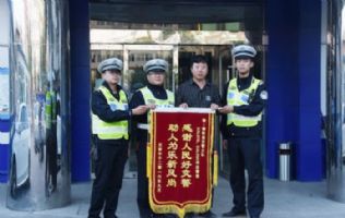 “感谢人民好交警,助人为乐新风尚”锦旗送到县交警大队