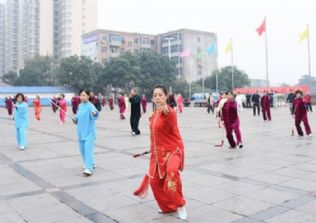 10月1日早晨,县杨氏太极拳协会在东湖广场举行了“庆国庆”百人太极拳集体展演。