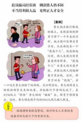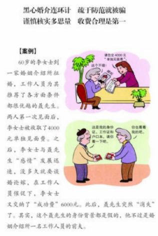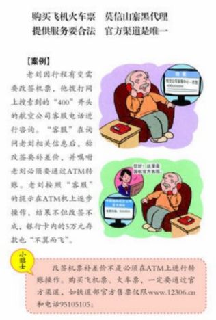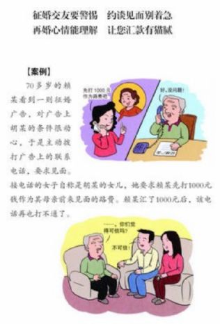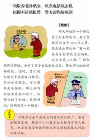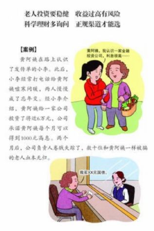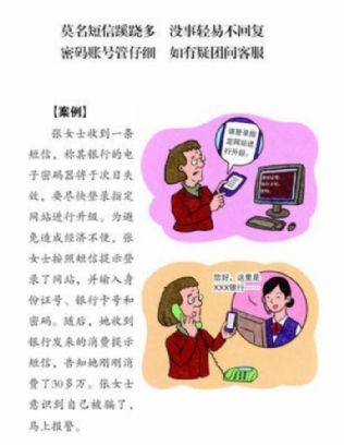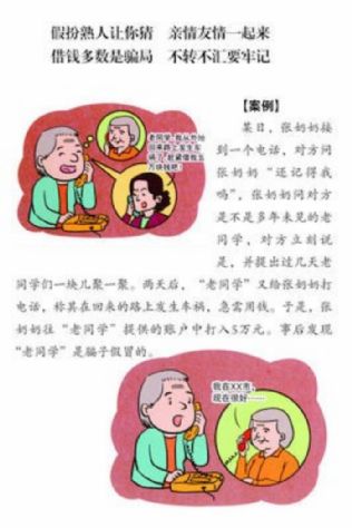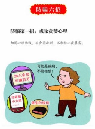 据了解,《中国老年人防诈骗指南》包括防骗六招和四十条案例,涵盖了网络诈骗、电信诈骗、街头诈骗、交友诈骗等多方面内容。其中,“防骗六招”包括戒除贪婪心理,抵制虚荣心理,强化警戒心理,正规途径办事,常与亲友沟通,讲科学勤学习。指南以发案率高低为主线,通过图文并茂的表现形式,力求适合老年人的阅读习惯。本报特选取部分内容刊登,目的是向全县广大老年人普及防诈骗知识与技巧,提高老年人自我防范意识与能力,切实保障老年人的合法权益,提高老年人晚年的生活质量。