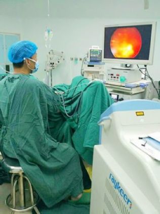 县人民医院泌尿外科最近开展了经尿道前列腺等离子电切术、经尿道膀胱肿瘤等离子电切术、经尿道膀胱结石钬激光碎石取石术等微创手术治疗,为医院填补了空白。图为经尿道膀胱结石钬激光碎石取石术中。