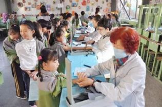 10月14日,来自省城有关医院的60名医生对紫林路小学二到六年级的500余名学生进行了抽样监测。监测项目包括身高、体重、血压、视力、龋齿、坐位体前屈、握力、50米跑、立定跳远等17项内容。
