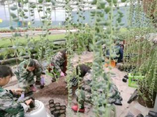 10月19日,在山西大禾现代农业示范园内,工人正在灌装花盆基土。该园是省、市重点农业建设项目,目前,已形成集科技育苗、示范推广、休闲采摘等功能于一体的国家级标准化农业园区,带动了周边村民致富奔小康。