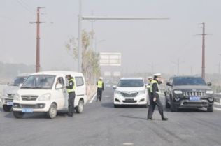 县交警大队加大对滨河西路清徐段和307国道文源路口的监管力度,抽调专人分组昼夜守候,重点管控大型货车驶入县城区域。经过一段时间的整治,县城交通秩序得到明显改善。图为交警在滨河西路文源路桥例行检查。