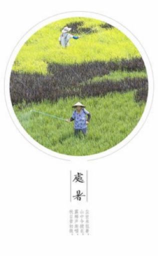 处暑天还暑,好似秋老虎。处暑雨,粒粒皆是米。处暑满地黄,家家修廪仓。处暑高粱遍地红。处暑十日忙割谷。处暑移白菜,猛锄蹲苗晒。处暑见红枣,秋分打净了。