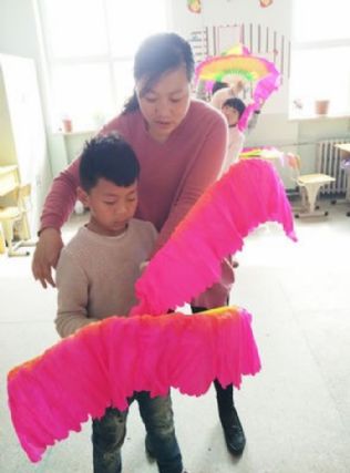 鑫鑫(化名)是自闭症的孩子,眼睛也不太好,总是喜欢转圈、跺脚,自己玩儿。细心的孟婧发现,鑫鑫虽然不善表达,但是很单纯,他总能因为一点儿小事就莫名地开心,刚刚摔倒的鑫鑫见到自己喜欢的玩具那一刻,所有的疼痛都不足为惧,立刻爬起来抱着玩具微笑。孟婧慢慢试着跟他沟通。鑫鑫起初看不清生字格,写的字很大、歪歪扭扭,一个句号比字都大,孟婧就手把手地教他写字。“自闭症的孩子虽然不会表达,但他们心里也很明白,知道感恩。一个举大拇指的小动作可能也要学习很多遍,一个简单的发音可能要喊上许多天,但坚持不懈,终究还是能学会的,我也能从他们身上学会了‘坚持就是胜利,即便再苦再累再难,只要持之以恒,就能收获成功’的道理。”在她看来,这些特殊孩子们带给她的幸福和快乐远远大于自己的牺牲和付出。“六一”儿童节要排练节目。这对于这些特殊的孩子们来说是个艰巨的任务,对孟婧来讲更是个巨大的挑战!她通常是自己把舞蹈跳熟练以后,再把动作一个个细化、分解教给孩子们。而且每个动作几乎都要花一节课的时间才勉强让孩子们接受。记住舞蹈动作以后,便是和着音乐跳,作为指导老师,孟婧必须要站在舞台前方,孩子们都能看到的位置,而且方向还得和他们一致,还必须提前节奏半拍左右给他们提示,这样他们的动作才能将就合上音乐的节奏。练习过程是漫长的,也是辛苦的,指挥一遍学生跳一遍,每天练习结束,孟婧的胳膊都是酸酸的,腿也站得僵直,可看着孩子们舞动身体时那脸上浮现出享受的笑,孟婧的心是暖的。当他们苦练了一学期的舞蹈《荷塘月色》得到大家的认可时,孟婧特别自豪!