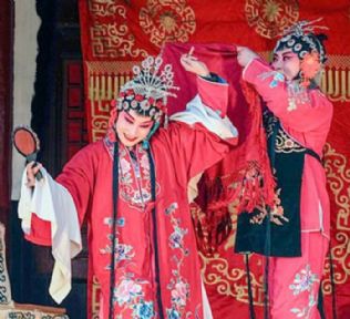 听母亲说,她在11岁的那年,戏班子里有一位和她同岁的女孩子登台演出。这个女孩子扮小生,唱了一出叫《双头驴》的折子戏。讲的是一位男相公,牵着一头小毛驴急急忙忙去赶脚。却碰到一位身材娇巧雪肤花貌的女子挡在前面。男相公赶快躲向一边,小女子双唇含珠面带微笑又转身挡在前面。男相公着急万分要去兜揽生意,却被这位小女子挡住去路无法前行。男相公唱着:“世上只有男缠女,如今却见女缠男;授受不清是大忌,这让我如何能逃离……”出口字正腔圆,唱腔委婉悦耳,面显无奈搓手跺脚,一招一式唯妙唯俏,整个戏场里掌声不断叫好连片。表演的女孩子小名叫“果果”,艺名“果子红”,曾唱遍省内外。举世闻名的晋剧表演艺术家丁果仙,就是从外婆门前的大戏台开始走上艺术道路的。