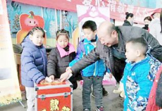 2月21日早上8点多,正是上学时间,前来送孩子的家长带着自己的孩子排着队纷纷向捐款箱走去。孩子们伸出稚嫩的小手,你10元、我20元,将自己的零花钱投入了捐款箱中。