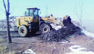 ①2月23—25日,东于镇出动铲车对新307国道两侧乱堆乱放煤堆、石堆进行平摊清理。