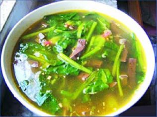 鸭血菠菜汤的做法: