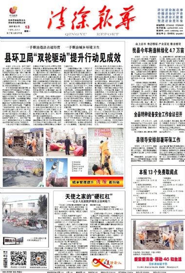 本报讯3月8、9日,县环卫局环卫队出动3辆大自卸车、20多名保洁员,公路段出动1辆铲车,对307...
