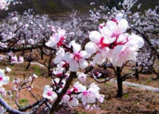 水峪村的杏花,不能算作花海,而是像农人一样散淡,三三两两,三五成群,相伴成趣;或小众扎堆,突然一片,恣意灵动;或化作菲云轻雾,浮在半山腰,依偎山峦;或变为珠串,缀在山野的衣襟上。一忽片的粉嫩,一圐圙的雪白,花朵的颜色还有区别,还有不同。一片菲红粉嫩,一片雪白冰肌。杏花开在山顶,衬着蓝天白云,紫烟升腾,如找着了依傍,简直就要升腾而去,修成正果,化作杏花仙子。