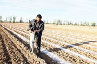 西谷乡抓住雨后有利时机抢播快种为丰产丰收奠定基础。图为长头村一村民正在播种玉米。