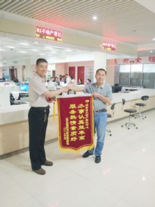 5月22日,中石化清徐石油公司向县不动产登记中心赠送了写有“办事认真效率高,服务热情素质好”的锦旗,感谢该中心工作人员在办理不动产登记证过程中提供的细致高效服务。