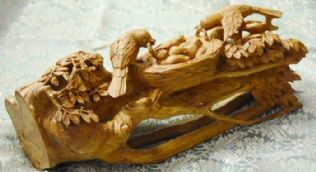 对于雕刻艺术的痴情痴迷,从小学时代起,李文俊无论多苦多难,他都从未离开。即便在其20来岁有两三年时间跑车搞运输,每每闲暇之际,他也会用手比划着琢磨他的雕刻艺术。