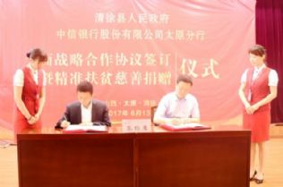 签约仪式上,王琳玉代表县政府与中信银行太原分行签订了战略合作协议书,中信银行太原分行与县创新投资发展有限公司签订了战略合作协议,中信银行清徐支行还向县慈善会捐赠了5万元精准扶贫款。