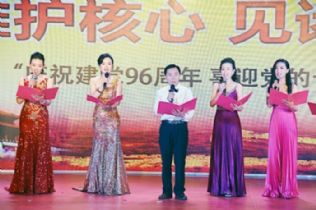 歌舞荟萃,少长咸集。8个各具特色和风格的节目讴歌了中国共产党96年的伟大历程和光辉业绩。县四大班子领导参与的大合唱——《没有共产党就没有新中国》、《四渡赤水出奇兵》,把观众带回到烽火连天、艰苦卓绝的峥嵘岁月,也拉开了演出的序幕;由“夏青杯”朗诵大赛评委团队和成功闯入“夏青杯”省级复赛的部分优秀选手们分别带来的经典诵读《七月放歌》、《我骄傲,我是中国人》,犹如一幅壮美画卷,展示了伟大祖国在各个时代的进步与成就,抒发了作为中国人心中的那份骄傲与自豪;笛子独奏《扬鞭催马运粮忙》、民乐演奏《战马奔腾》,让观众时而在快乐的农夫身边,感受着粮食丰收的喜悦之情,时而又如同驰骋在广袤的草原上,周身激荡着热烈奔放、激情昂扬的壮士情怀;朗诵表演《红岩魂》、《唯有牺牲多壮志》,回忆了中国共产党在毛泽东的带领下战胜万般困苦,不怕困难、不畏牺牲的历史情景,重温了那些革命英雄的光辉瞬间;小合唱《妈妈教我一支歌》,唱出了每一位中华儿女心中最柔情的记忆,也唱出了广大党员干部踏上新征程、实现中国梦的豪迈决心。