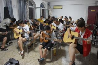 现在回忆过去经历的种种,像是重新讲述着老旧故事,谈及这些,代宇昊眼神里多了一份冷静,这些,都是经历过岁月,慢慢沉淀下来的。受好朋友何永平影响,代宇昊萌发了做公益的想法。他说:“清徐人的休闲娱乐形式太单一,而且有的娱乐风气不好,我想做的就是改变这种风气,全民学音乐,相比较一有时间相约搓麻将,相约广场弹唱更有意义。”代宇昊为了让更多的人接触音乐、接触乐器,他开办起了免费培训班,免费提供吉他,只要对音乐感兴趣的朋友都可以来参加,一开班,报名的人还着实不少,其中年纪最大的都65岁了。