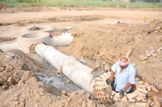 紫林路东延工程目前正在加紧推进中,作为一条城市次干路,该工程西起紫林路,东至榆古路,全长594米,红线宽30米。微循环路为榆古路与紫林路连接线,城市支路,南起紫林路,北至榆古路,全长259米,红线宽10米,现已完成路基平整,铺设污水波纹管800米,砌污水井28座;铺设混凝土雨水管道1400米,砌雨水井25座。图为施工人员正在砌筑雨污水井。