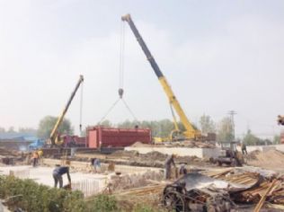 10月12日,期待已久的第一台锅炉到达了,但是,县供热公司约1300平米的施工场地,被正在施工的锅炉基座和中控室占去了很大一部分,要想把长达29米、底盘只有20厘米高、转弯半径非常大的运送锅炉的车“请”到施工位,可是大费周折。面对“意外”的难题,中清源马上组织力量展开施工——挪开了路边的绿化带,临时拓宽了路面,加垫了石料,大约200米的路程,这台锅炉“走”了整整一天时间。由于夜间不准吊装,次日上午11时左右,首台80蒸吨的锅炉炉膛被安放到基座,锅炉的本体、省煤器和空预器预及其他部件的施工马上有序展开。锅炉安装原本需要一个月时间,他们只用了七天!