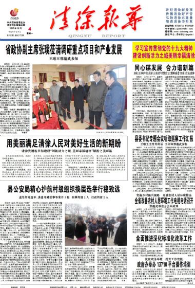 本报讯12月1日上午,由省政协副主席张璞带队的调研组一行莅清,就我县重点项目、产业发展进行专项调...